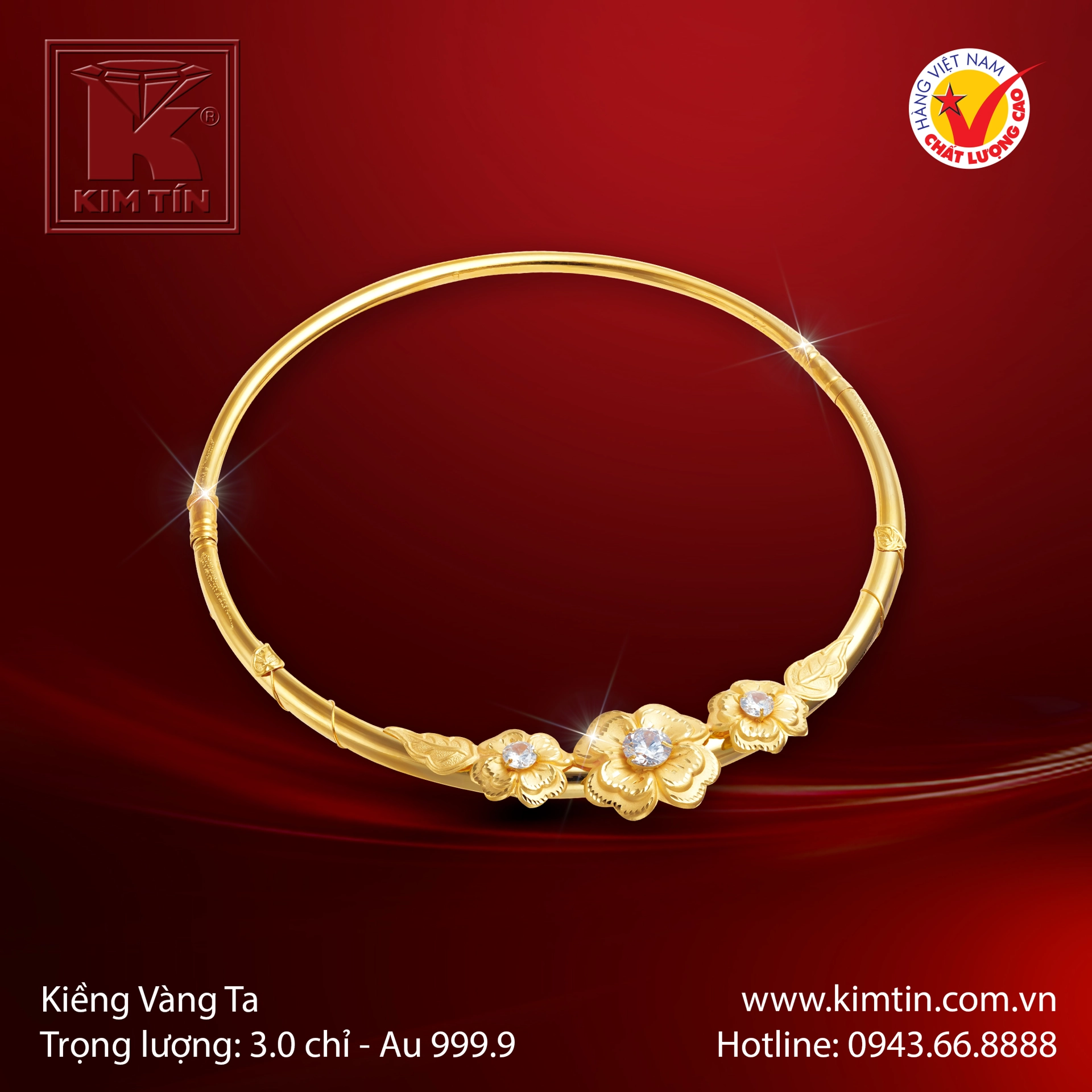 Chiếc kiềng vàng ta 24K, chế tác từ 3 chỉ vàng nguyên chất (Au 999.9), mang đến sự rực rỡ, quý phái và trường tồn theo thời gian.